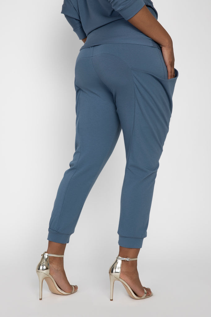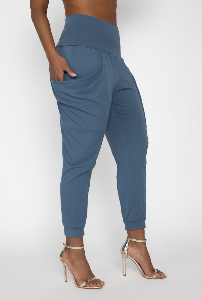 A classic styled jogger with some flair of course! Our draped pockets add style and a chic look while still being comfortable in a sustainably-made harem pocket jogger pant.