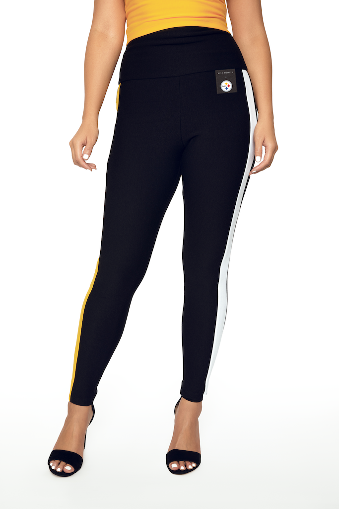 This women's fleece full-length Pittsburgh Steelers Striped Legging is the perfect sustainably-made transitional piece to compliment your Steelers game day attire. Athleisure features like our signature waistband that can be worn high-waisted to minimize bulk and hug the midsection, or folded down for a yoga-style.