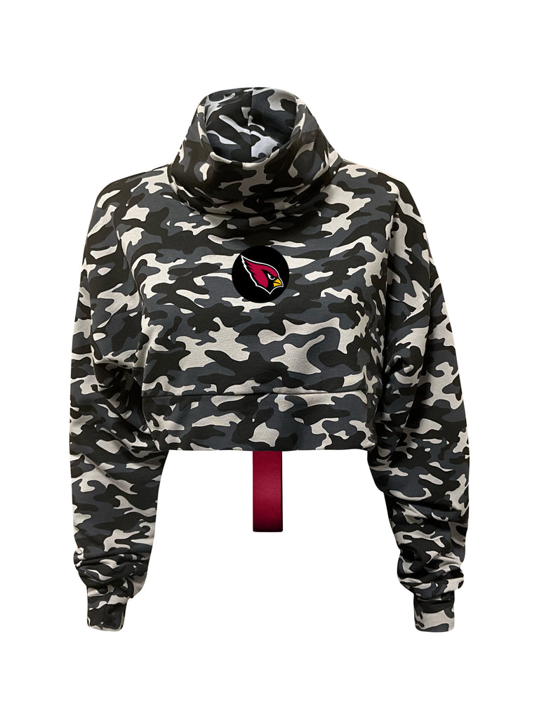 Embrace effortless style with our Women's Cropped Camo Sweatshirt. Featuring a sleek turtleneck and your favorite NFL team’s logo on the chest, this piece is crafted from a soft bamboo blend for unbeatable comfort. Perfect for showing off your team pride with a modern twist.
