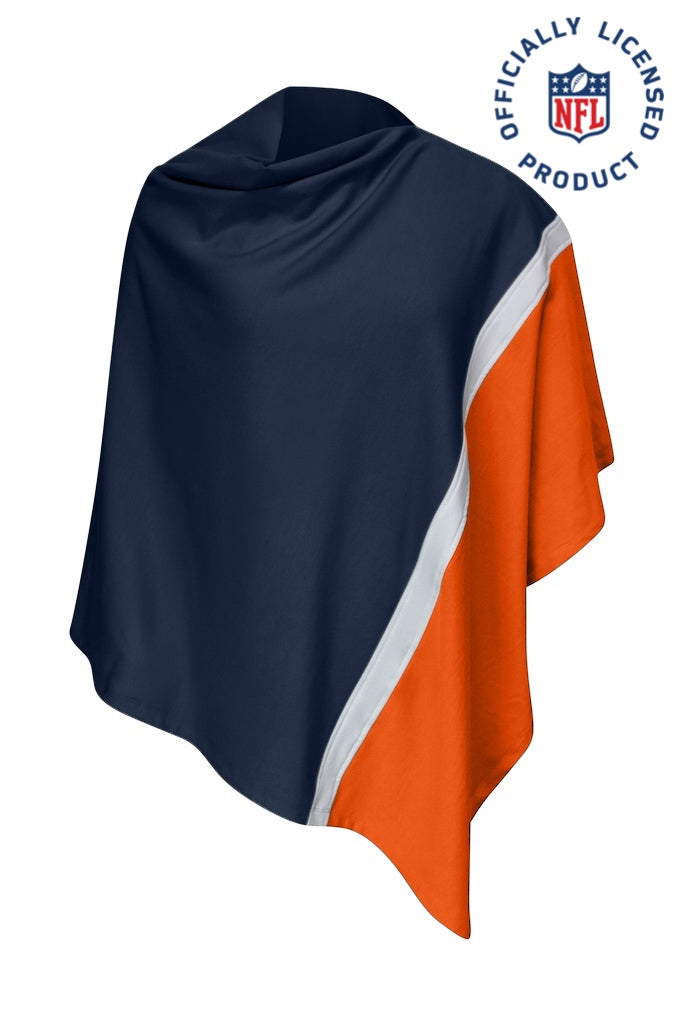 This Chicago Bears tri-color poncho is perfect for wearing as an extra layer for warmth while making a fashion statement about your favorite NFL team. You will feel as if you are wrapped up in a cozy blanket. The sewn on, full color Chicago Bears team logo patch is positioned at the side arm.