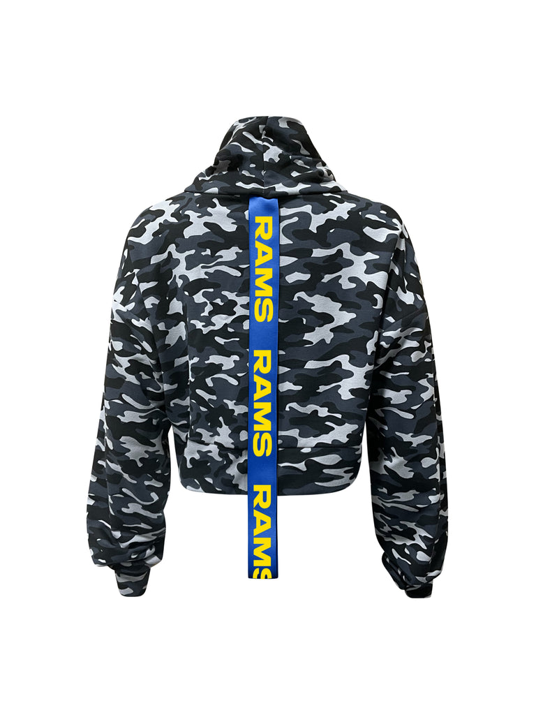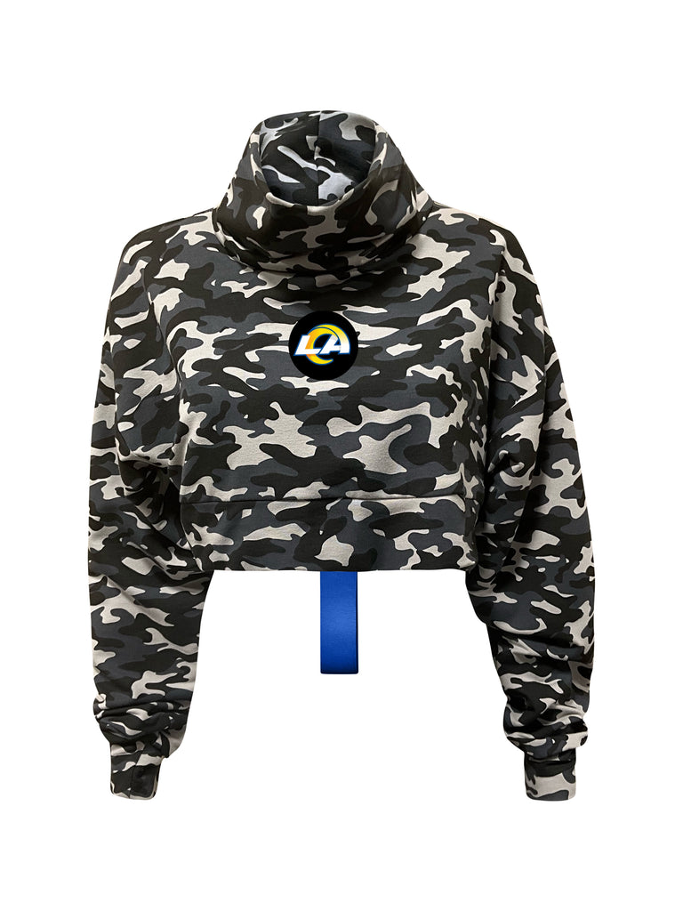 Step up your style game with our Women's Cropped Camo Sweatshirt. The turtleneck and camo pattern create a chic look, while the NFL logo on the chest adds a sporty touch. Made from a bamboo blend for softness and comfort.